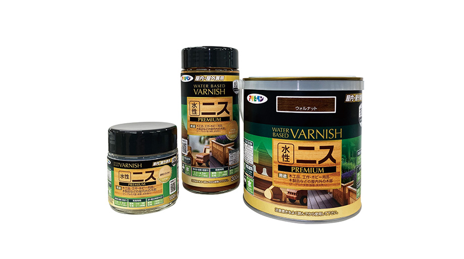 塗りにくい場合や、泡が残る場合などは、ニスを水で少し(5%以内)うすめます。