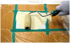 ローラーに塗料をふくませて、型紙の上に塗装していきます。はじめは、型紙から少し離れたところから塗装していきます。塗料をつけすぎたり、何度も塗装すると型紙の間から塗料が入り込みますのでご注意ください。