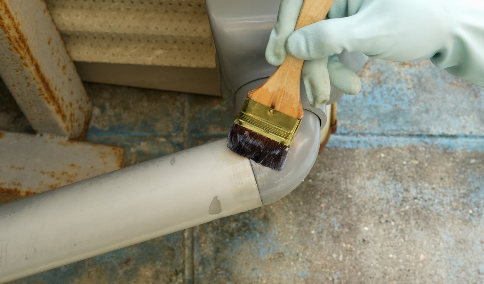 ●施工箇所の汚れ・ゴミ・コケ・カビ・油などをワイヤーブラシ、スクレーパーや中性洗剤、
