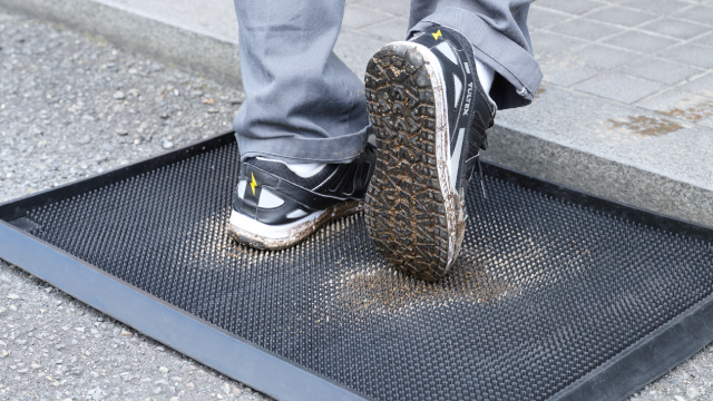 濡れると滑りやすくなる石材やタイルなどの玄関にラバーマットを敷いて滑り止めとして!靴底の汚れ落としとしても使えます。