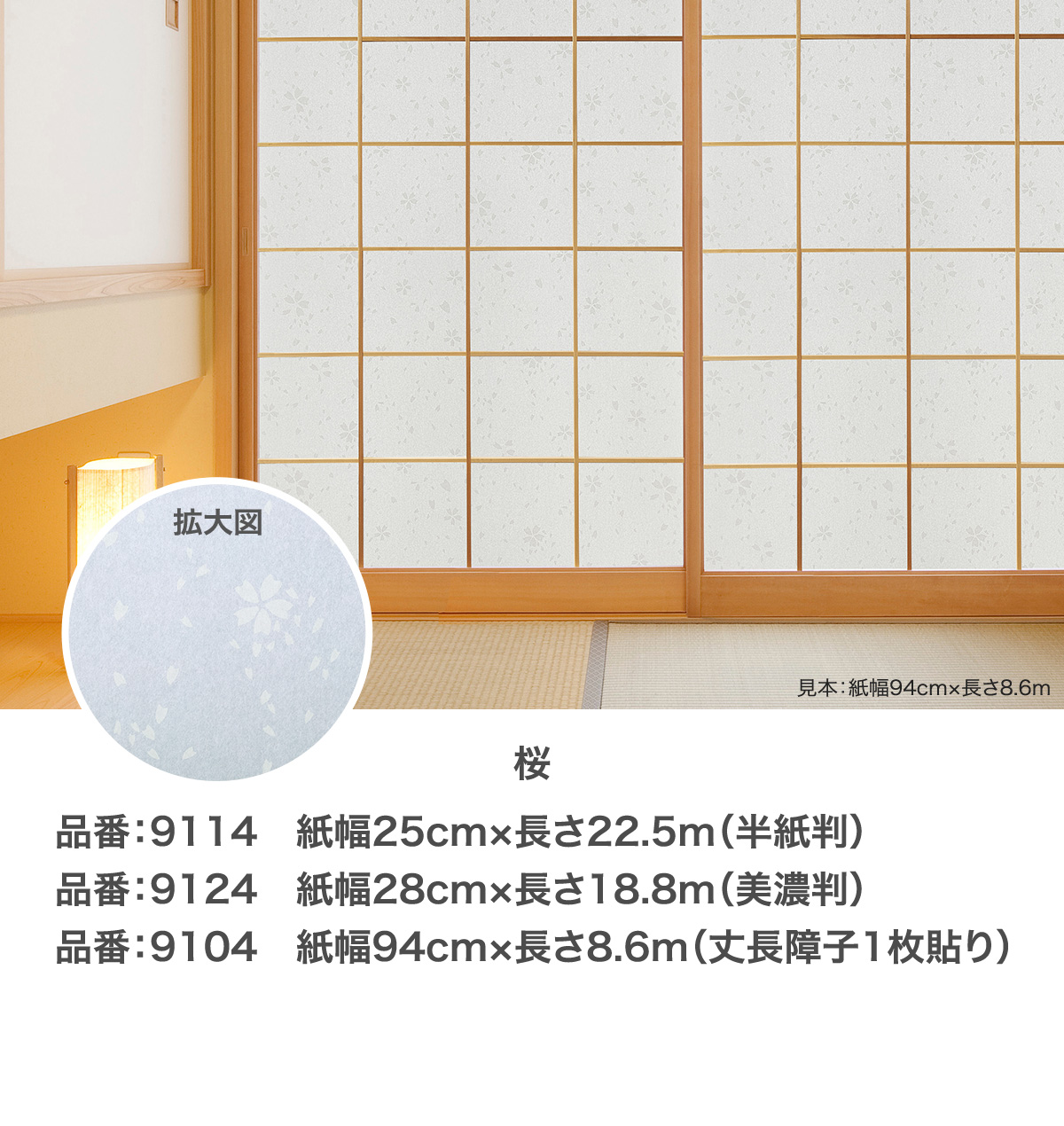 | 紙幅69cm×長さ8.6m、紙幅94cm×長さ8.6m | 丈長障子4枚分 |
